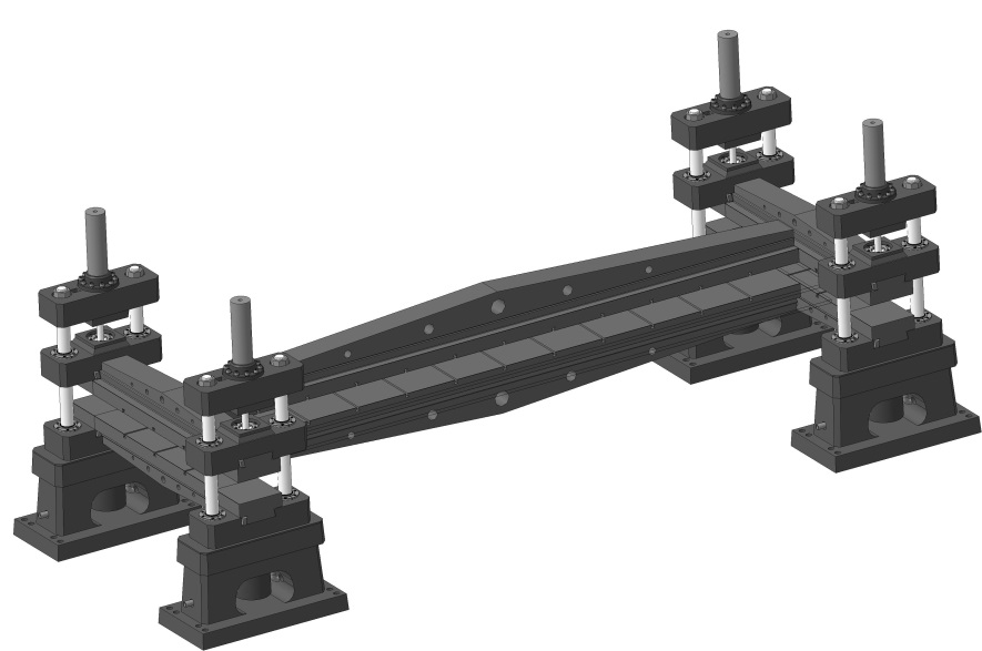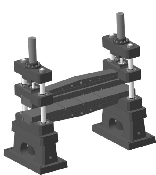 • Два таких пресса в комплекте с подвижной фермой-траверсой создают двухстоечную гидравлическую машину после оснащения, которой соответствующими приспособлениями и инструментом готовой к выполнению функций гильотины, кромкогиба, листогибочного пресса и т.д.
