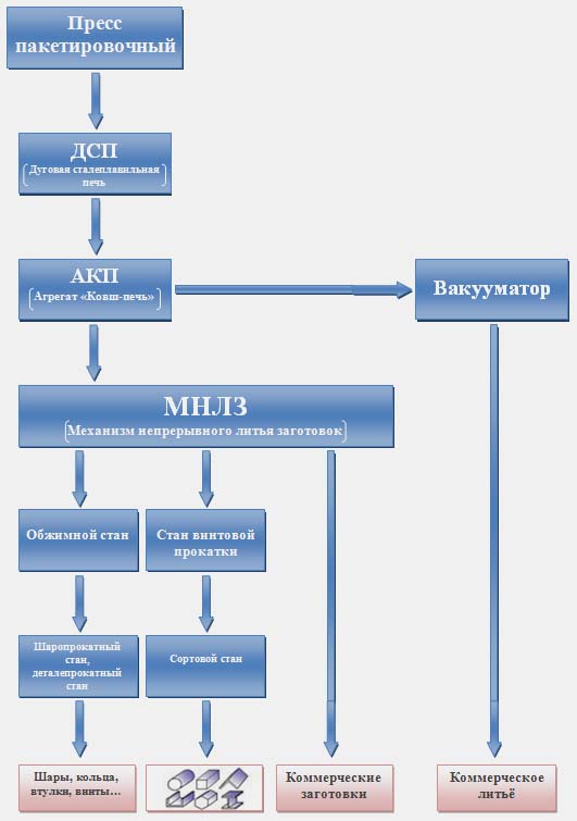 В силу модульности как технологического процесса, так и оборудования для него предназначенного можно предложить поэтапную схему создания минизавода производящего мелкосортную продукцию (см. риунок).