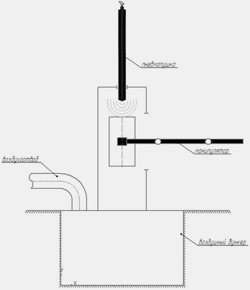 Система представляет из себя пневмогенератор в виде трубы диаметром 426 мм и длиной 2000 мм. Заполняемый сжатым воздухом объем пневмогенератора составляет около 280 литров. Пневмогенератор имеет выхлопное сопло диаметром 250 мм с быстродействующим затвором, который открывается в течение 0,01 секунды. Система управления позволит обеспечить автоматический режим работы системы очистки.